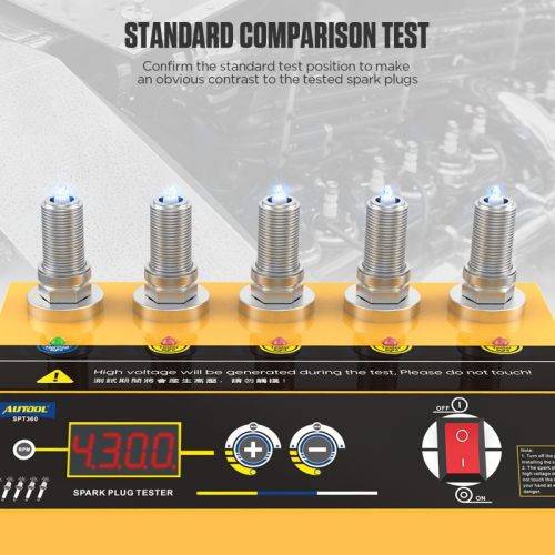 The Autool SPT360 Automotive Spark Plug Tester is a digital high-frequency tester, which is mainly used to test the performance of spark plugs safely and quickly. The SPT360 has a test frequency of up to 9000 rpm and is compatible with spark plug tests for all crankshaft engines and motorcycles on the market. This product adopts the position design of standard comparison test, which can compare five spark plugs at the same time, which is professional and efficient; it has the function of simulating the real speed of the engine and displaying the working frequency value of the tester and the whole process is digitally controlled, thus improving the accuracy of spark plug testing and the working efficiency of technicians and effectively ensuring the normal performance of spark plugs.