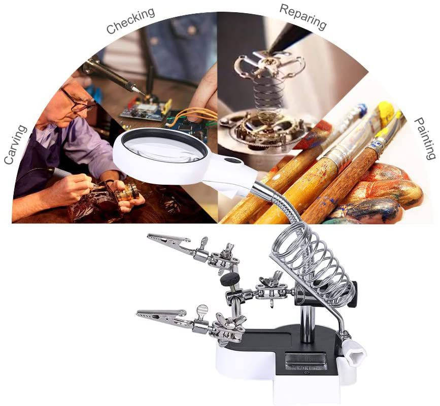 -This LED light auxiliary hand magnifier station enables complete focus on what you're doing without worrying about the tool tilting or moving.