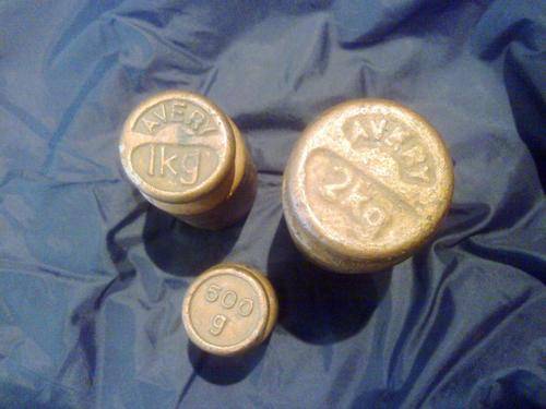 A stunning trio weight set, manufactured by Avery. It consists of a 0.5kg, 1kg and 2kg weights. All for on low price!