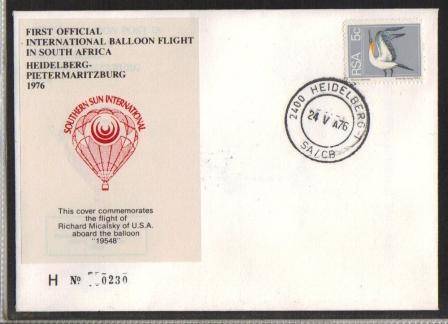 AVIATION 1976 FLIGHT COVER BALLOON FLIGHT HEILDELBURG TO PIETERMARITZBURG # H230