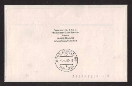 AVIATION - 1985 1ST SAA NON STOP FLIGHT JHB - ZURICH AIRPHILSA FLIGHT COVER # 100 SIGNED BY CAPTAIN