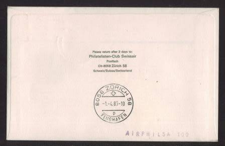 AVIATION - AIRPHILSA # 100 - SAA FIRST FLIGHT NON STOP JOHANNESBURG TO ZURICH 31/3/85 SIGNED CAPTAIN