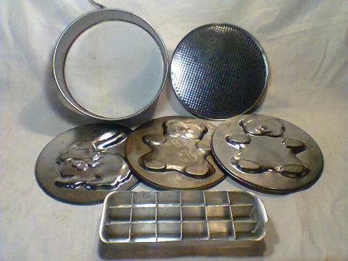 Awesome 2 Teddies & a Rabbit & A normal Cake Bake Pan Plus a Retro Ice Tray all in good condition.