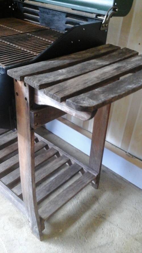 THERE IS A SHELF TOWARDS THE BOTTOM UNDER THE BRAAI. THERE IS ALSO A SMALL SHELF ON EITHER SIDE OF THE BRAAI.