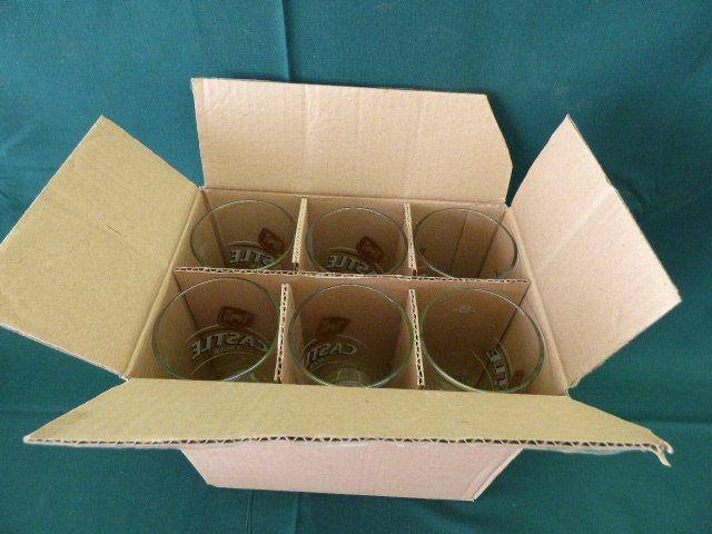 CHECK THESE AWESOME CASTLE LAGER, CRICKET THEMED DRAUGHT GLASSES - THEY ARE STILL NEW IN THE BOX IN PRISTINE CONDITION. YOU ARE BIDDING PER GLASS FOR A BOX OF 6 GLASSES AND THERE ARE 2 BOXES...I.E. 12 GLASSES IN TOTAL!!!