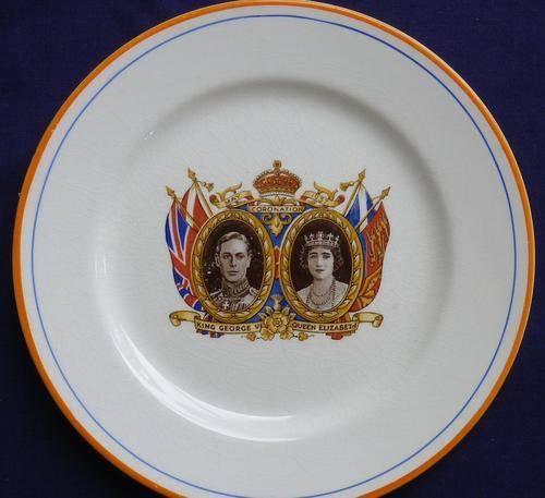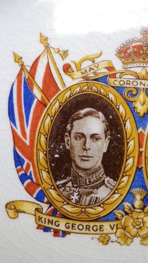 Commemorating the Coronation of King George of England, May 1937 this lovely plate has portraits of the King, and Queen Elizabeth The Queen Mother (parents of Princess Margaret and the current Queen Elizabeth II). It is in excellent vintage condition. No chips or cracks -just light crazing expected for a plate this old, and a teeny bit of wear to the colour around the VERY handsome King's face. Lovely detail. This is VERY special. 17.5cm diameter. A MUST have for the ardent Royalist.