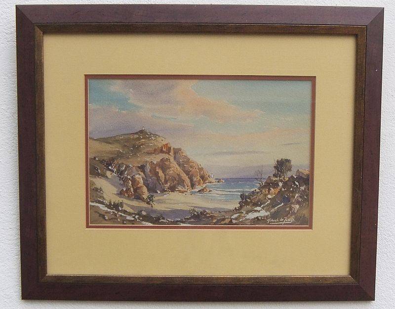 An amazing rare find by well known SA artist Gabriel De Jongh ,son of artist Tinus De Jongh . This is an original watercolor with allot of detail , removed from the frame to verify . The glass will be removed for safe transit , the glass might cost R 60 your side to replace , not a big sacrifice for such a prized item .