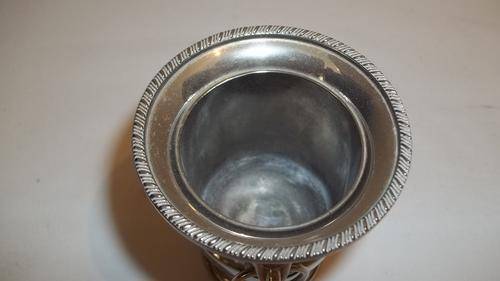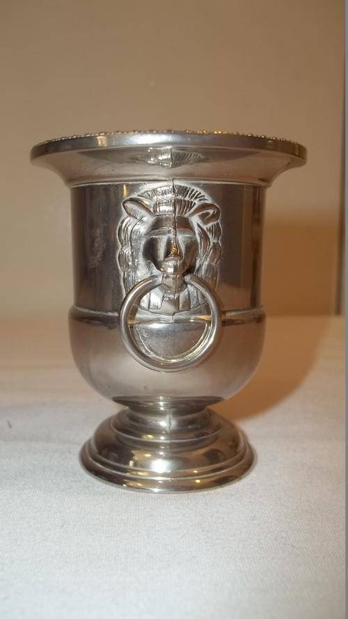 THIS AWESOME LITTLE SILVER PLATED URN MEASURES 7.35cm TALL AND HAS VERY PRETTY LION-HEAD RING HANDLES. THE URN IS IN GOOD CONDITION.