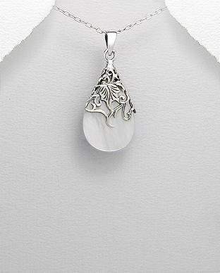 AWESOME MOTHER OF PEARL PENDANT IN PURE 925 STERLING SILVER