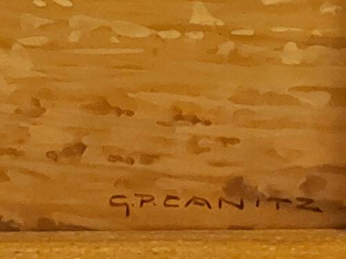 AWESOME ORIGINAL FRAMED OIL ON BOARD PAINTING BY THE WELL REPUTED SOUTH AFRICAN ARTIST G P CANITZ. PLEASE REFER TO INVALUABLE.COM FOR COMPARATIVE PRICES. THE FRAME MEASURES 48 X 45 CM, WHEREAS THE ACTUAL PAINTING MEASURES 35 X 32 CM