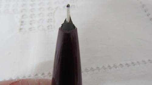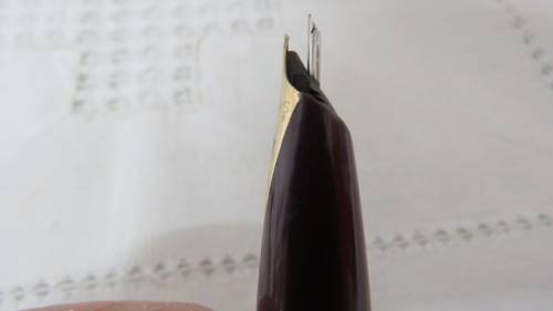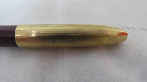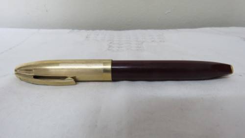 This awesome original Sheaffer's pen has a hooded 14 ct gold nib. While not necessary for everyone's grip, some do push up very close to the nib for comfort and control when writing. The hooded nib allows for this without the worry of ink-covered fingers. The last purpose of the hooded nib is that the filler hole is much closer to the nib than a traditional fountain pen. This pen is stamped with the Sheaffer name and '14K'. I am not an expert in this field, and cannot guarantee the pen is in working order,but it is in great condition.