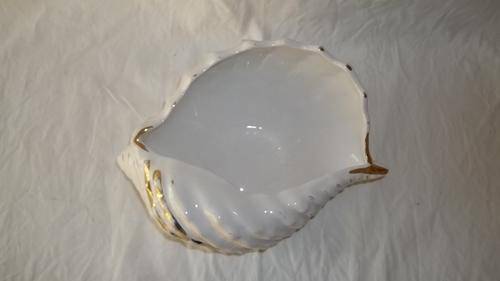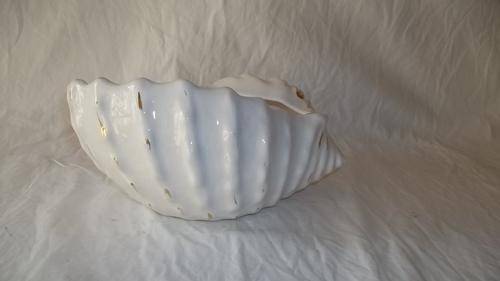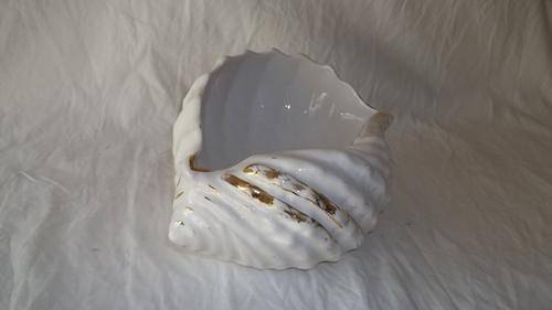 THIS STUNNING VINTAGE ORIGINAL LAMBIS OF ITALY CERAMIC SHELL MEASURES 28cm LONG x 8cm WIDE. THE AGE OF THIS AMAZING PIECE IS EVIDENT IN THE BEAUTIFUL CRACKLING IN THE GLAZING. THERE ARE NO CHIPS OR CRACKS. THE GOLD GILDING HAS TARNISHED SLIGHTLY, BUT DOES NOT DETRACT FROM THIS VERY COLLECTIBLE PIECE OF ITALIAN CERAMIC.