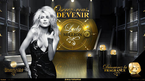 Flacon of Lady Million is in tune with composition and theme of this edition. Instead of gold bullion, the flacon for women is designed as a golden diamond. While insinuating luxury and wealth, the fragrance prepares a surprising composition of intertwined floral, fresh and woody accords.