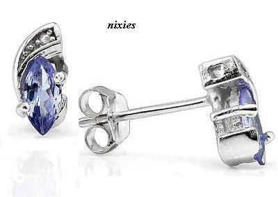 AWESOME REAL TANZANITE & DIAMOND 925 STERLING SILVER EARRINGS
