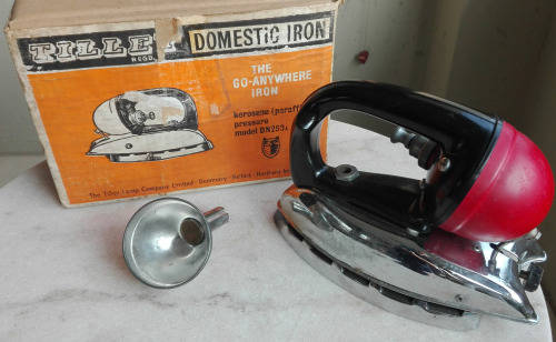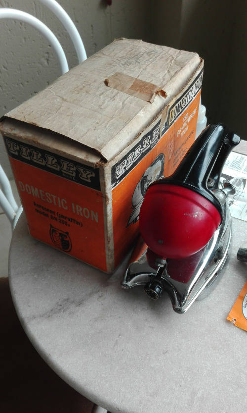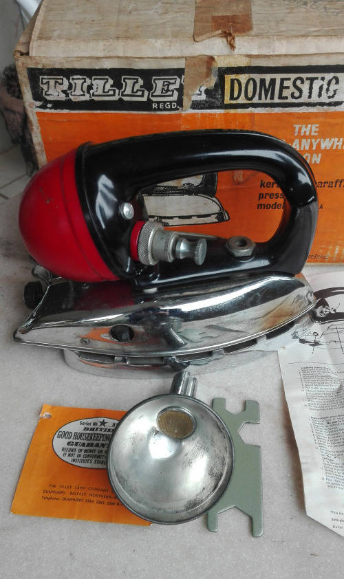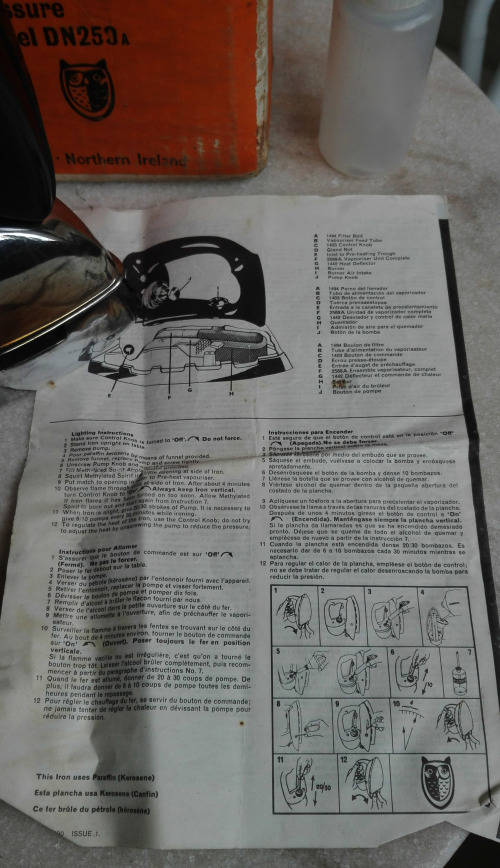THE IRON IS IN ALMOST MINT CONDITION, COMPLETE WITH THE BOX, SMALL TOOL, AND FILTER FUNNEL FOR FILLING THE PARAFFIN TANK. AND INSTRUCTION LEAFLET. NOT TOO MANY ON THE MARKET IN THIS AWESOME CONDITION.