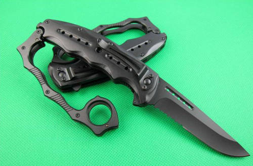 Item type: B098 tactical folding knife; Half Serration Blade; Full length: 23cm; Blade length: 9cm; Blade width: 2.8cm; Blade thickness: 2.8mm; Blade material: 7Cr17; Net weight: 250g; Gross Weight: 300g; Hardness: 57HRC; Handle material: Aluminium; Surface: Black Oxide; Lock Type: Lock liner Semi-automatic open knife.