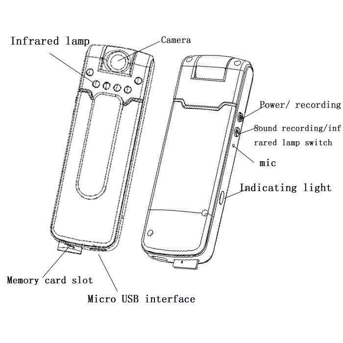 4. . Open/close infrared lamp: in standby, video mode, long press recording button for 2 seconds, a few times, green light, red light flashing/go out.
