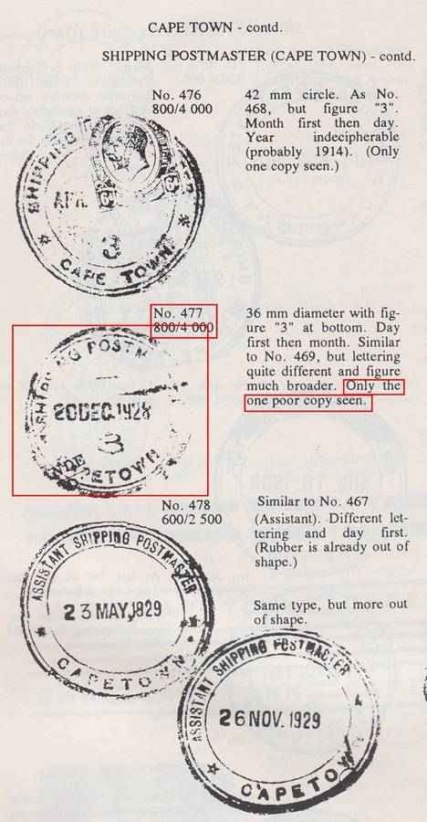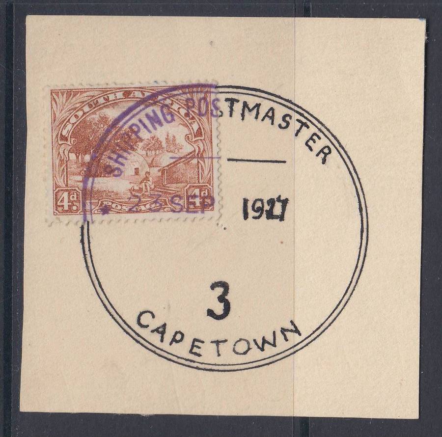 B180201 KGV SHIPPING MASTER = 23 SEPT 1927 South Africa London extremely RR usage Putzel 477