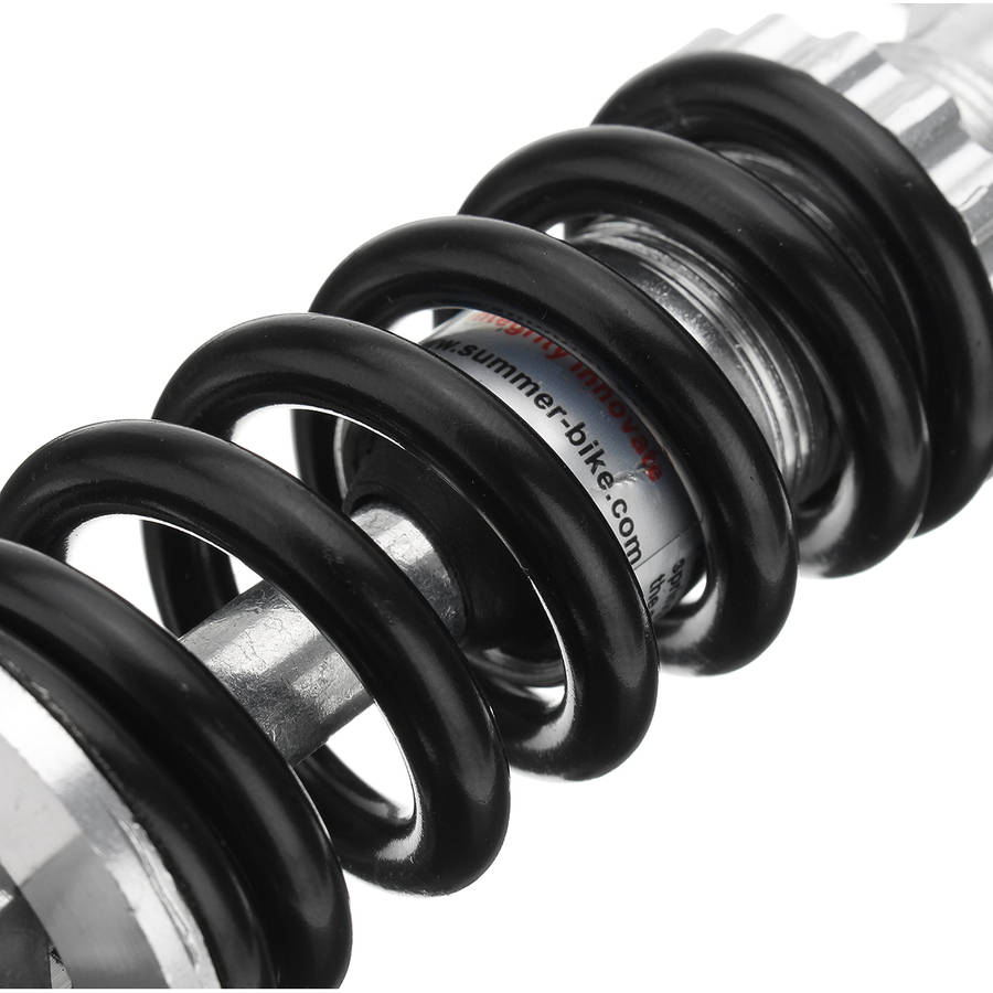 Specification: Model: B95 Material: Stainless Steel Name: Bike Shock Absorber Color: Black Length: 125mm (4.9") eye to eye(Hole Center to center distance) Suspension: 450LBS/in Hole diameter: 8mm/ 0.31" Absorber size: approx. 140x42mm/ 5.5"x1.65" (LxD) Maximum working pressure: 2000kg Application:For mountain bikes,electric bikes and other bicycle shock-absorbing
