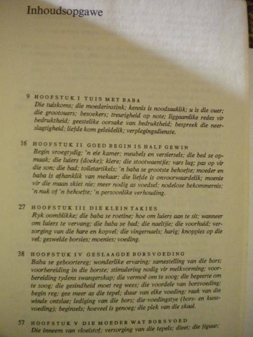 Baba-sorg deur Dr. Jan van Elfen. Buiteblad is geskeur en daar is 'n geskenkinskrywing voor in boek maar verder goed. Onder 1kg.