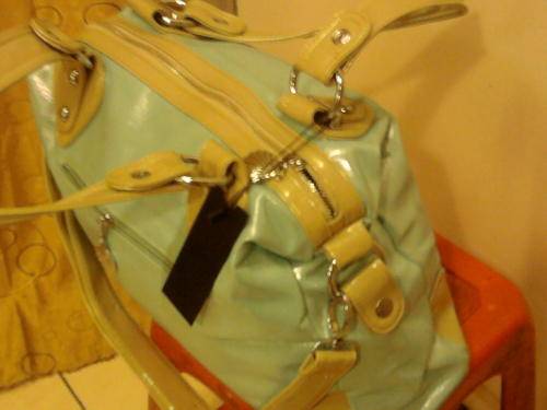 this is a baby blue exclusive italian handbag a true fashion statement it has three straps