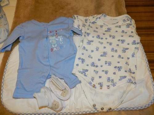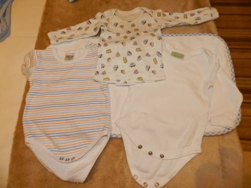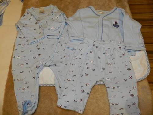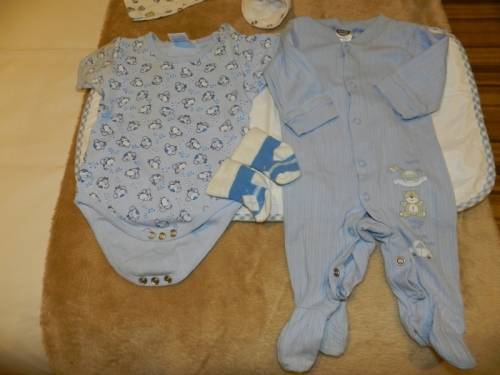 Baby Boy Clothing 0-3 months. Various consists of: Plastic changing mat. 4x short sleeve Baby grows. 2x short sleeve short leg Baby grows. 2x long Baby grow with covered feet. 1x vest and legging. 2x loose vests. 1x pair shoes and 1x pair socks.