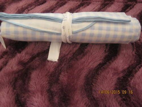 These items may be pre-owned but they were never used. The bundle includes the following items :1. A blue and white baby blanket, made from 100% cotton [70-90 cm]