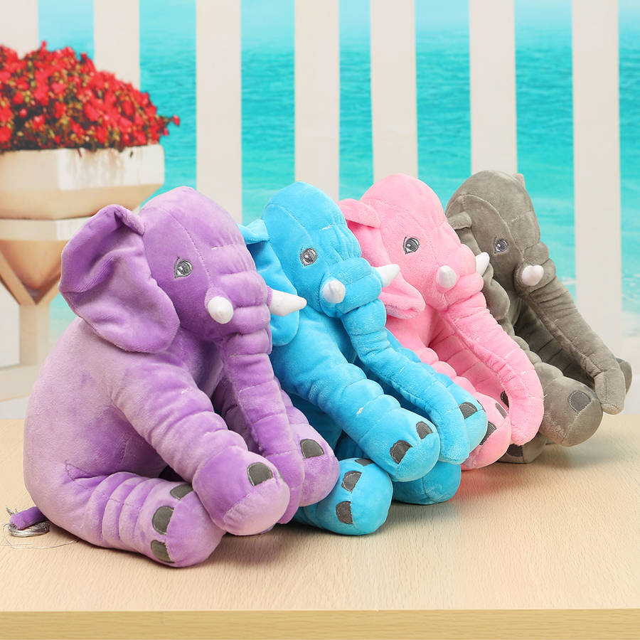 Specification: Shape: Elephant Material: PP Cotton+Plush Color: Purple, Pink, Gray, Blue Size: 33cm x 28cm