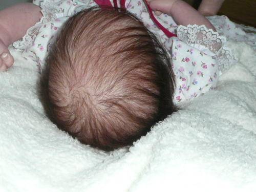 her ears and eyelids, milkspots on her nose and spit bubbles, also a 'stork bite' on her neck.