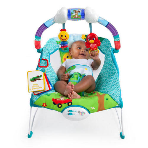 Great minds start little.™ Classic melodies and baby-activated nature sounds and soothing vibrations comforts baby. The Caterpillar’s Day at the Park Bouncer™ from Baby Einstein™ makes baby cozy in a deep, cradling seat with mesh side panels for extra comfort. The removable toy bar includes some of baby's favorite Baby Einstein characters like Red Bird, Caterpillar and more with bead chaser, pull and spin discovery paddles featuring real-life imagery. Removable fabric flash cards and a C-link for adding more toys rounds out the fun. 3-point harness for security and the seat pad is machine washable.