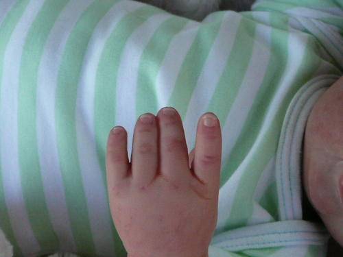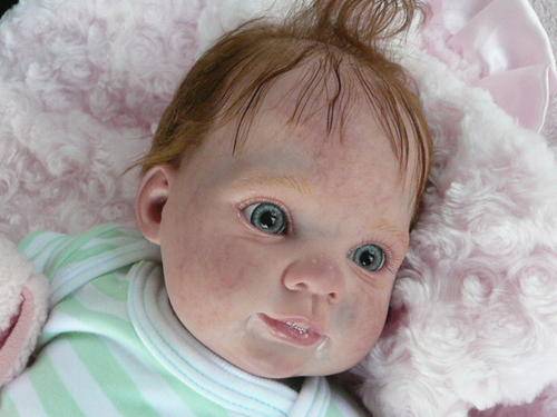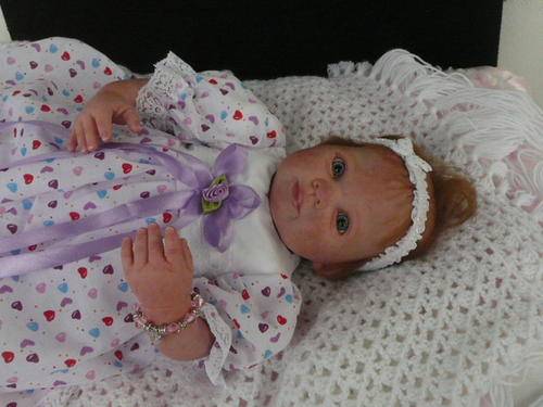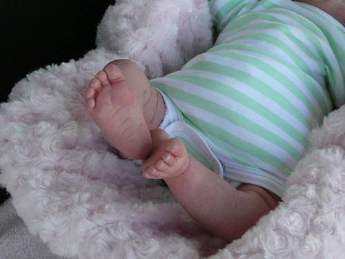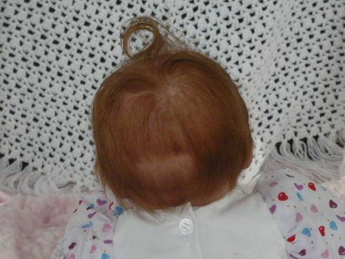 Her limbs are filled and sealed with Polypellets. Her head and body has been filled with soft polyfill with sealed bags of tiny glass beads, to obtain a real-life baby feel when you pick her up. She has the freshly powdered baby smell.