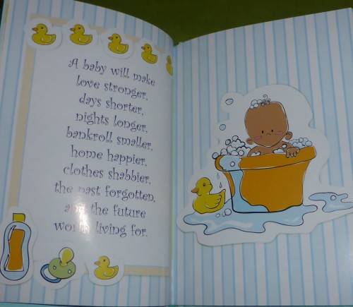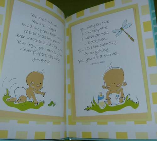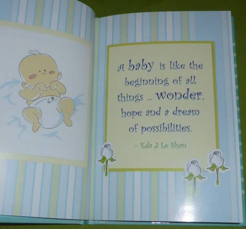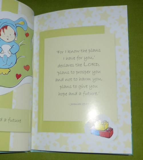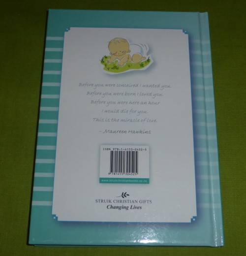 A brand new, hard cover book BLESSINGS FOR YOUR BABY BOY. Size is 13cm x 18,5cm. Such a lovely gift to give at a Stork Party.