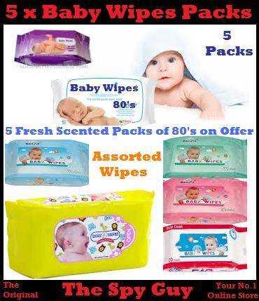 Baby Wipes 5 Pack Offers of 80 Fresh Scented Wipes per Pack Alcohol FREE Aloe Vera