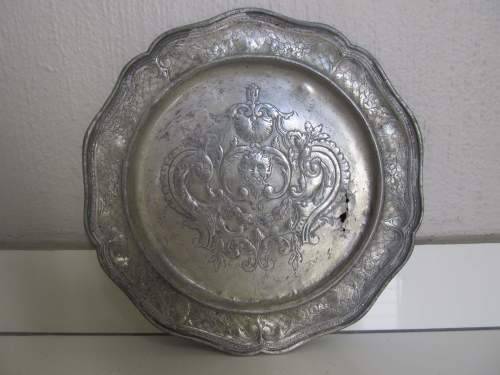 CONDITION : THE PLATE HAS AGE WEAR AND TWO SMALL HOLES ON THE RIGHT SIDE OF THE WELL. ASIDE FROM THIS IT HAS NO OTHER DAMAGES