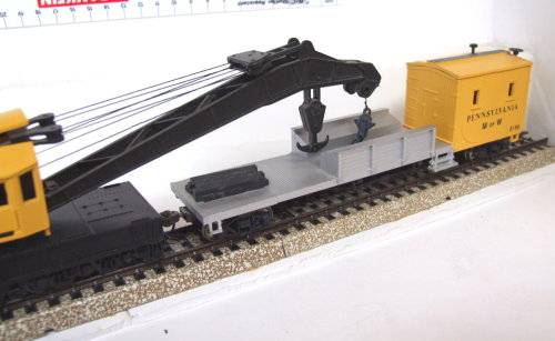 On auction is this recovery crane in very good used condition. It is fitted with KD couplings and triple bogeys with metal wheel sets. No corrosion on the metal parts. The operating key for the crane is missing, but I will make a plan with a key and all buffer stops intact . The support car is fitted with double bogeys with metal wheelsets and KD couplings. Please see photos for detail for it is part of the description. Contact me by e-mail for inquiries