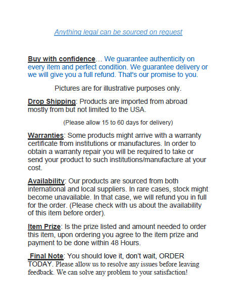 R35.00 Standard shipping using one of our trusted couriers applies to most areas in South Africa. Some areas may attract a R30.00 surcharge. This will be calculated at checkout if applicable.