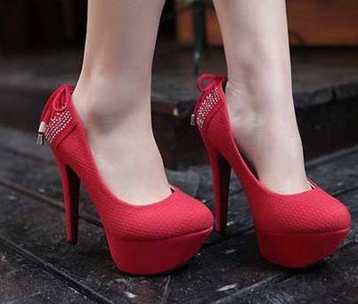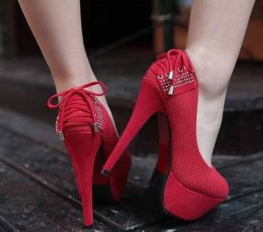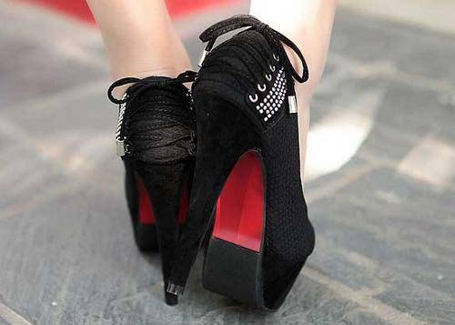 Back Lace up 13cm High Pumps in Black/Red (Size 2.5 - 6)