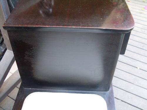magazines etc. It is dark stained Mahogany. Please view all photos.