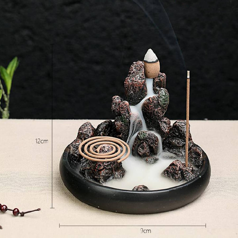 Backflow Incense Cone Burner Incense Stick Coil Holder Rockery Mountain Stream Fragrant Censer Decor
