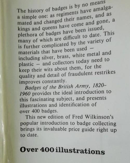 BADGES OF THE BRITISH ARMY 1820-1860 By F Wilkinson