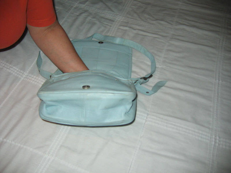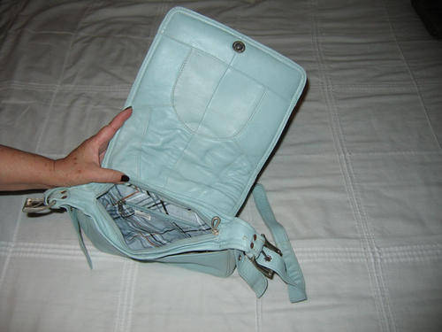 Item is a blue Genuine leather bag sold as an Unwanted gift and never used