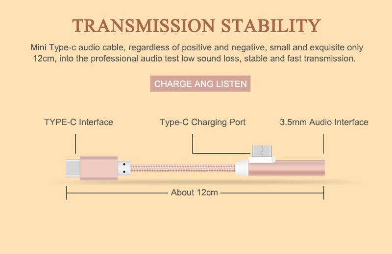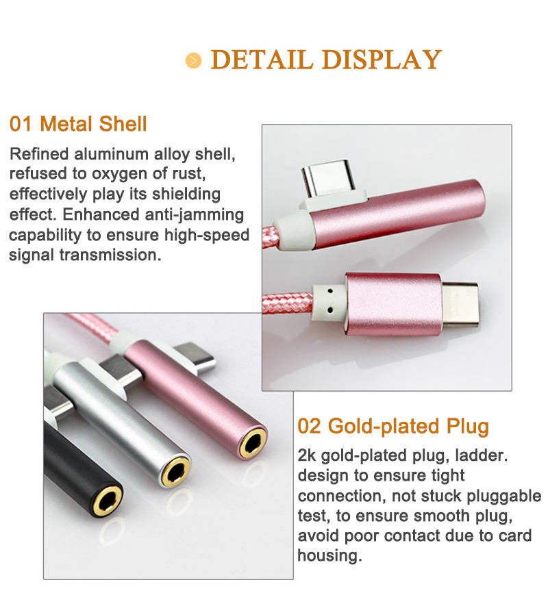 Specification: Weight: 8.7g Length: 12cm Material: Metal+Nylon Type: Type C to 3.5mm Color: Black, Silver, Red, Gold, Rose Gold