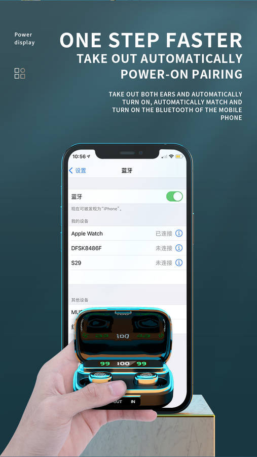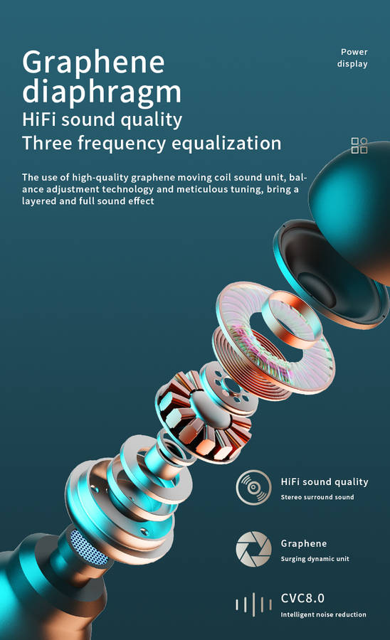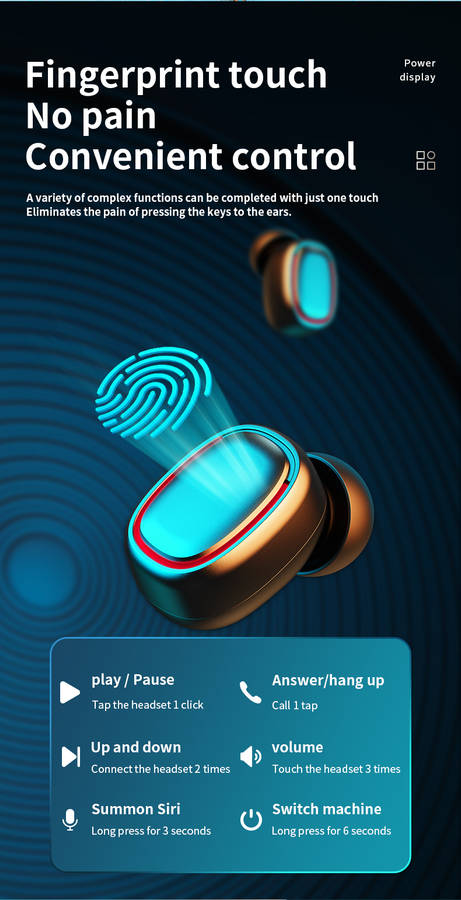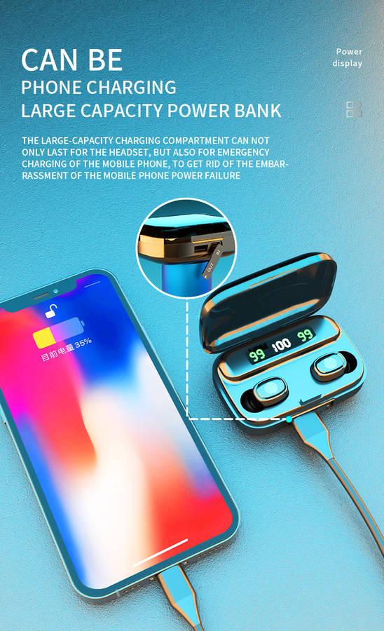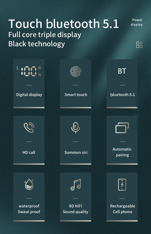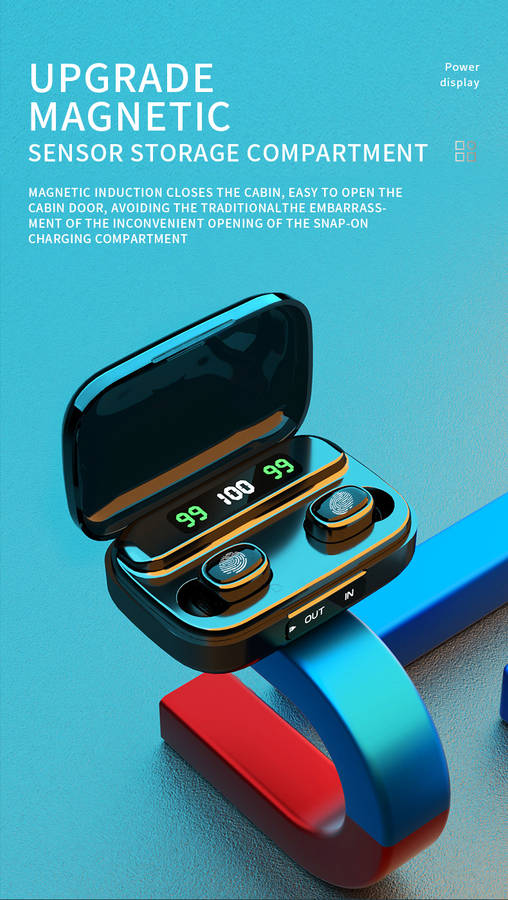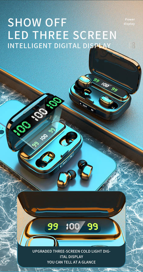 Features: -Built-in 5.1 BT chip, has stronger and more stable transmission speed, lower Power consumtion, and more powerful performance. -9D noise reduction, break through the tradition. -Dual-ear high definition call, using CVC8.0 intelligent noise reduction call. -Three screen digital display, shows electricity quantity of earphones and Charging cabin clearly. -The sound has no delay, more enjoyable for games. -Magnetic-induction storage box, easy to use. -Fingerprint touching, convenient to control. -Automatically pair and connect to your phone when take out the earphones from the Charging cabin. -Call up voice assistant with one tap, support Siri/ Android voice assistant. -Waterproof and sweatproof, effectively prevents sweat from damaging components. -Mini size and portable, convenient to carry and wear. Specifications: Model: TWS-209S Color: black, blue, white (optional) BT version: 5.1 Working distance: 10m Voltage: 3-4.2V Single earphone capacity: 40mAh Charging-box capacity: 400mAh Music time: 5-6h Call time: 5-6h Item weight: 92g / 3.24ounces Package size: 115 * 110 * 40mm / 4.53 * 4.33 * 1.57in Package weight: 129g / 4.55ounces Package List: 1 * Pair of Earphone 1 * Charging Cabin 1 * Charging Cable 1 * User Manual