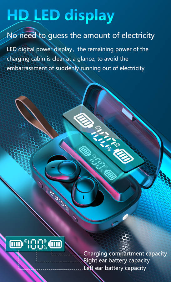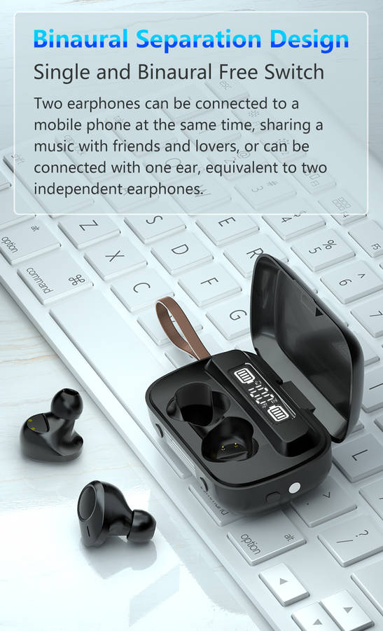 Features: 1. bluetooth V5.1, support most of bluetooth devices and lower power consumption. 2. 2000mAh charging case can full charge 2 earphones around 15 times, offer more music time.
