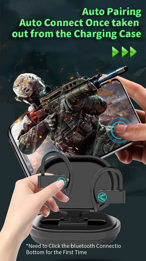 Features: -bluetooth 5.0 chip: lower power consumption, more stable. -Ear hook design, very comfortable and firm wearing. -Noise cancelling can lead you to a beautiful music world and you can follow every beat to move. -HD noise reduction microphone to make sure the talking clear. -Game Low Latency, sound and image sync for smooth and high-efficient game operation. Specification: Connection: BT wireless connection Battery capacity: 110mAh/pc Storage bag: 300mAh bluetooth Version: 5.0 Charging time: 1-2H Playing time: 8-10 hours Standby time: 180hours Colors: black, white,red,blue Shipping term: EXW/CFR/CIF/FOB and so on. Payment term: Paypal/ Bank Transfer/ Western Union/ Trade Assurance(VISA,MasterCard,e-Checking,T/T) Package included: 1 Pair * TWS bluetooth Earphones 1 * Charging Case 1 * Charging Cable 1 * Manual