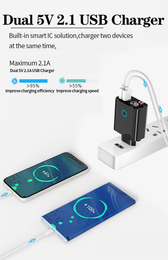 Built in QC2.0 fast charging module, supporting 2.1A dual USB fast charging, easy charging of mobile phone, tablet, etc