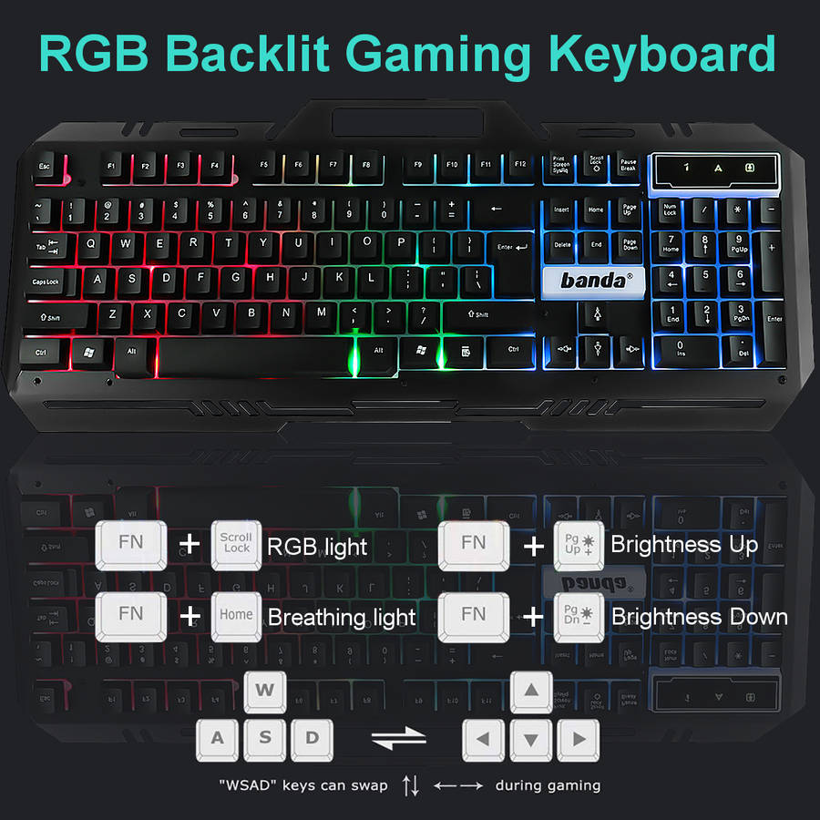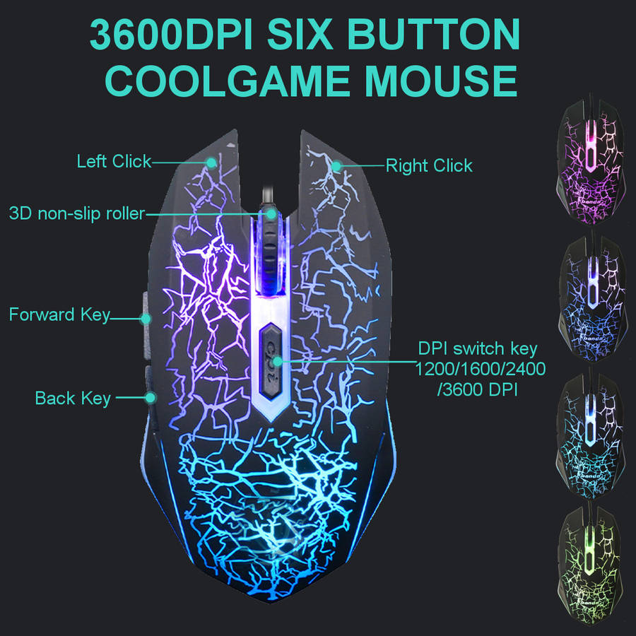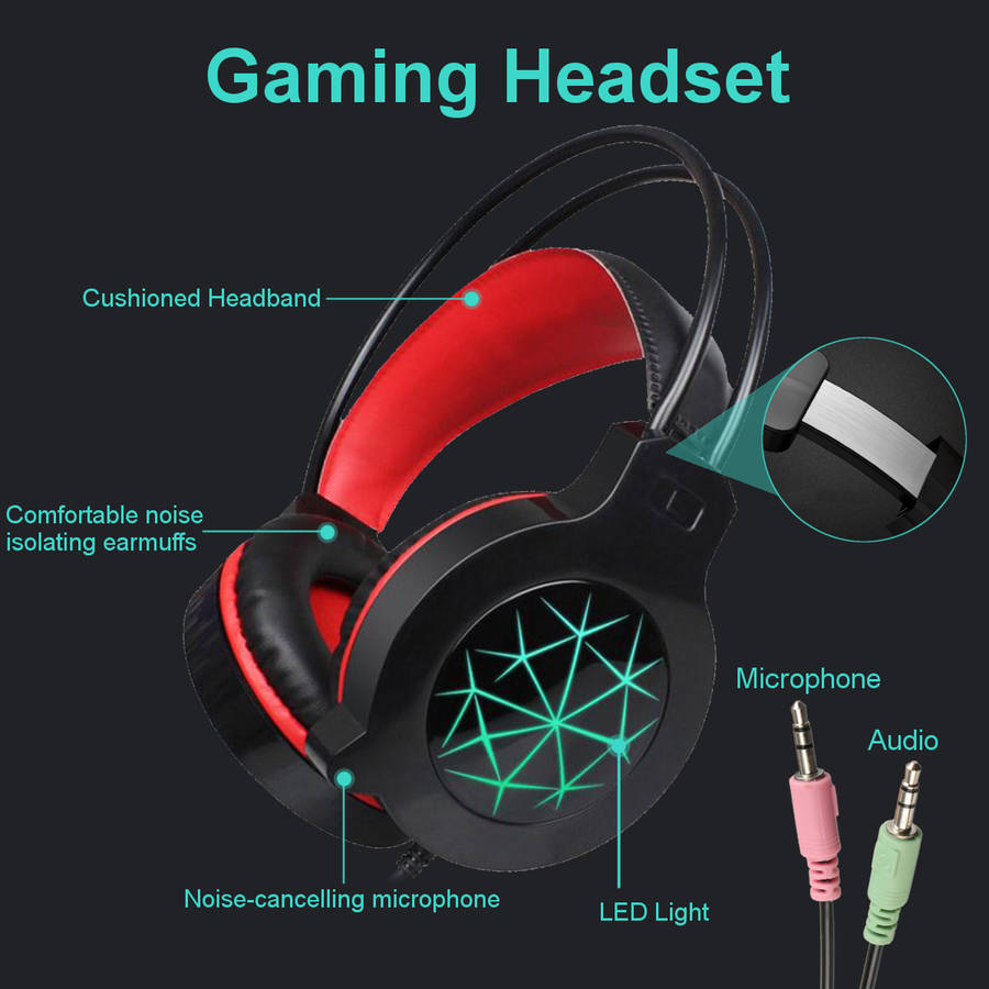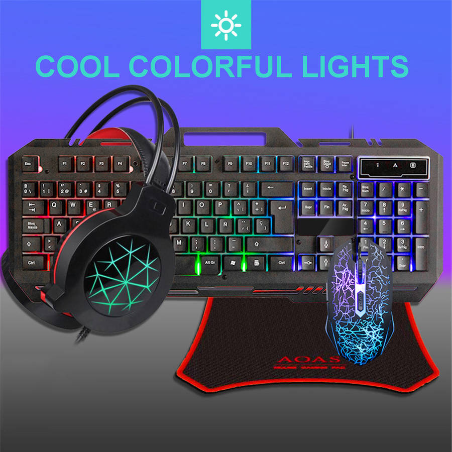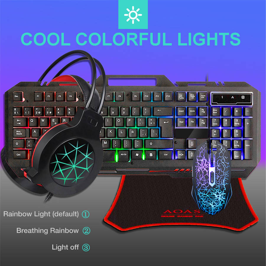 Features: -Gaming Keyboard: Scroll Lock Key: Turn on / off the RGB backlit.The 104 keys keyboard has rgb backlit function; All letters glow and never fade; This keyboard has built-in steel plate, anti-fall; Durable 61inch USB braided wire.19 Non-conflict keys allows you to press or hold multiple keys simultaneously. -Wired Gaming Headset: Soft breathable earmuffs,bass surround,with adjustable high definition microphone, will give you best sound quality and effective communication in all gaming actions.The gaming headset includes the adapter to work with Laptop,PC Computer, Xbox One, PS4,Tablet and Mobile phones. -Gaming Mouse: Ergonomically Designed and Quality ABS construction; Durable USB wire; 4 Different LED breathing light change automatically; DPI Adjustable: 1200/1600/2400/3600; Forward Key + DPI Key: Turn on/off the mouse backlight. -Gaming Mouse Pad: Provide large space for mouse moving, made of superior material, smooth exquisite cloth on surface provide comfortable wrist rest support, the rubber at the bottom ensures mouse pad does not slip. -Compatible System: Work well for PC,Computer,Laptop,PS4,Xbox One. USB Connect, Plug & Play, No driver required, Compatible with Windows XP/ VISTA/ Win 7/ Win 8/ Win 10.