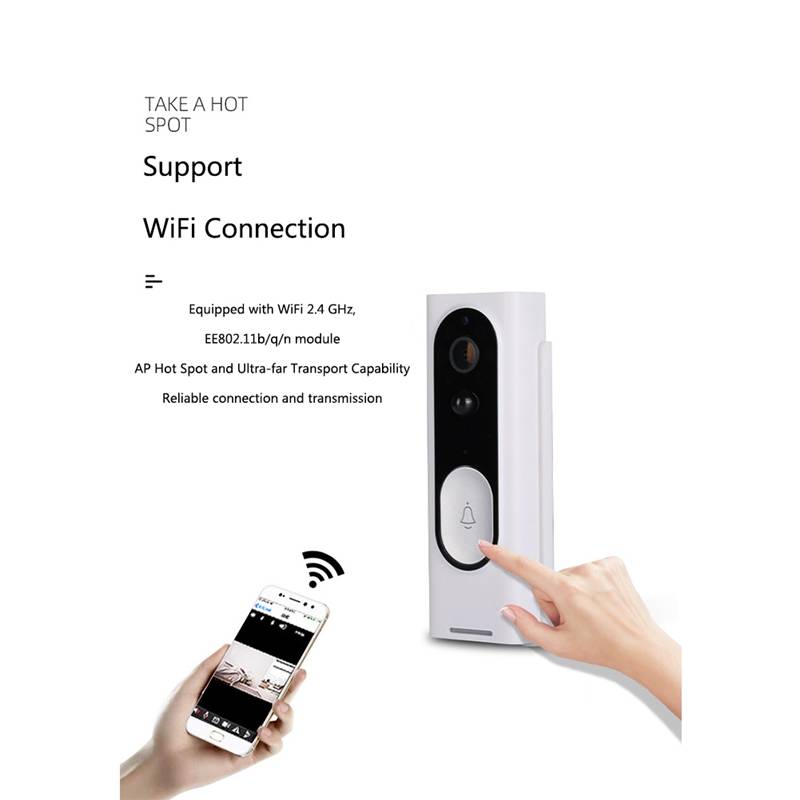 Description: Rainproof: The doorbell can be installed outdoors, so you don't have to worry about getting wet. This WiFi doorbell can be connected to the home WiFi to enable two-way intercommunication between the doorbell and the phone. The user will receive the call to verify who the visitor is, then talk to the visitor and open the door remotely. When the guest presses the ringtone, the camera will start sending live images and making calls. Parameter: Brand: Bakeey Color: White Material: ABS Size: 13.5x4.8x3.3cm Battery: 2x3.7 V battery (excluding tax) Video: 1280x720 / H.264 adaptive rate, adapt to multiple networks Voice: Echo cancels voice intercom Viewing angle: RCUT automatically switches double filter Function day and night infrared light: 6x850mm LED Photosensitive sensitivity: 1LuX Storage: Support 8G / 16G / 32G device card Video: Support mobile phone local recording, on-demand video playback / video support device on-demand video playback Wake-up activity: wake up active remote call, PR wake up, wake up device button Quick start: system startup, in milliseconds Push message: accelerate in 1 second Package Contents: 1*wireless doorbell 1*screw package 1*3 meter sticker 1*instruction manual
