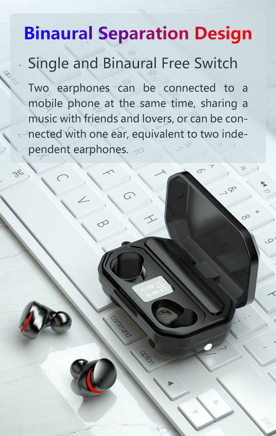 The two-ear split design allows the single ear to be used separately, equivalent to two independent bluetooth headsets.
