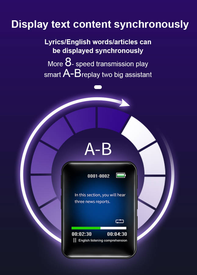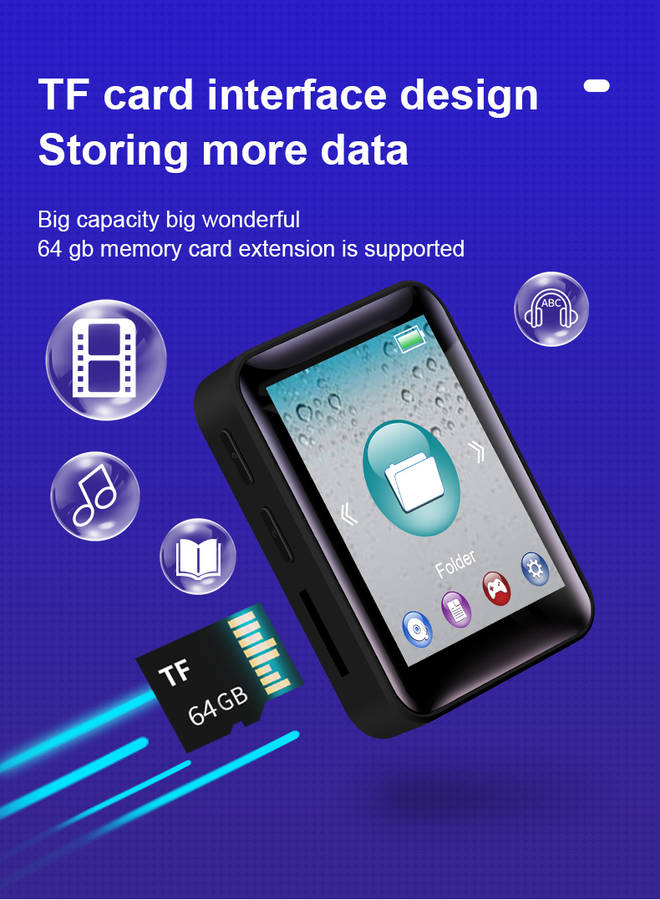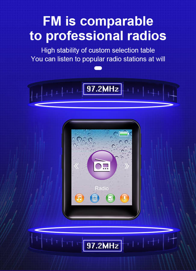 Features: -Music Format: MP3MP1,MP2,MP3/WAV/APE/WMA/FLAC etc,Lossless BIG sound ( Doesnat support M4A ) -Video Format: AW/AVI ( Converted video ) -Picture Format: JPG/JPEG/BMP photo -E-book Mode: TXT files only -Playing Mode: Random/Repeat -Built-in Voice Recorder -Built-in FM radio -Lyrics display function: LRC lyrics display -7 Preset EQ: Rock,Funk, Hip Hop, Classical, Electronic Music, Customize -Long Music Playing: 5-8 hours -Support 128GB Micro Secure Digital Memory CardsNot Included